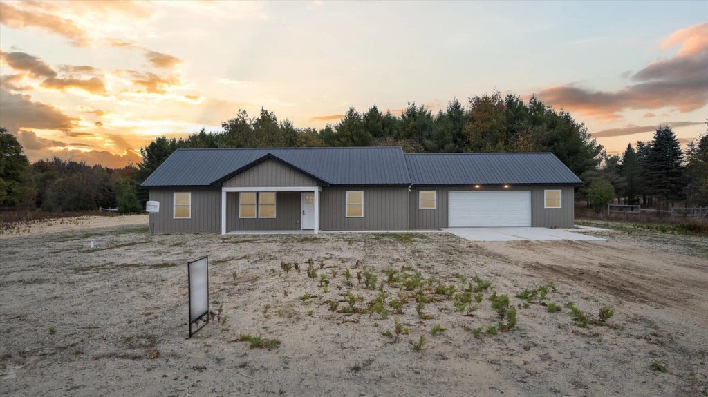 This newly built home sits on a serene 1.74 acre parcel and offers an inviting blend of privacy and convenience only minutes from downtown Kalkaska. Inside, a gourmet kitchen anchors the home. It features elegant concrete countertops and the kind of finishes that you will love. The open concept design connects the kitchen, dining and living areas into one expansive, flowing space, a layout you will appreciate for its sense of roominess. 3 spacious bedrooms and 2 well appointed full baths provide comfortable accommodations. Radiant floor heating warms every corner of the house including the attached garage for an additional 758 sq ft of heated and finished space. This type of heating delivers gentle, even warmth and can lower energy consumption compared with forced air systems.
