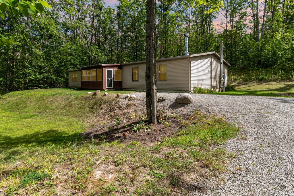 BEAUTIFUL 4BR/3BATH HOME- located just N of downtown Mio. Situated on 13.33 acres. . Built 2017, 2432 sf. on Co. Maint. Rd. Lrg. 30 x 40 pole barn w/slab and power. 5'' well and 8 x 16 fully enclosed 4 season room. The Interior is very spacious. Large Kit/dining combo with Kit. Island. LR has wood Burning fireplace, Large mstr suite w/walk in closet and mstr bath. Split BR floor plan, Mstr BR on one side & remaining B/R's on opposite end of home. Between them is a 14 x 31 Family room for entertaining & main floor laundry facilities. Insulated crawl, whole house filtration system, A/C and Forced air Electric furnace. The property also has additional storage sheds for all your needs. Heavily wooded for outdoor enjoyment., This property has everything you could desire.