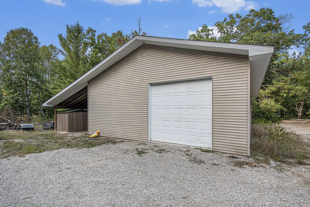 30×50 Pole Barn with Enclosed Lean-To on .63 Acre! Just over 4 miles south of Indian River, this versatile property features a 30×50 pole barn with a 14×40 enclosed lean-to for added storage. The building sits on a concrete slab with a 10′ overhead door, electricity, and bright interior lighting. Inside is a separate enclosed room—perfect for a workshop, office, or extra storage. Natural gas is now run to the building! The wooded lot provides privacy with a convenient driveway off S Straits Hwy. (Adjacent home with Sturgeon River frontage on 3.69 acres also available for $475K - MLS #201837157)