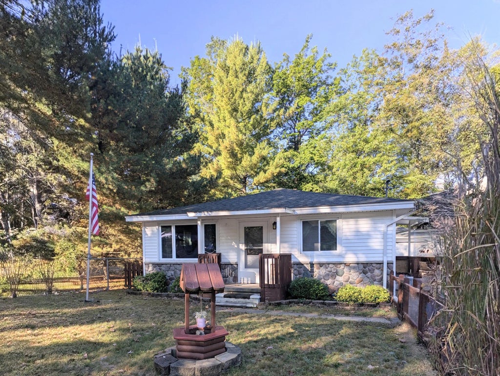 Charming two-bedroom ranch just a short walk from beautiful Houghton Lake with convenient road-end access. The home features a fenced backyard, perfect for pets, along with a two car garage with an extra storage shed. Enjoy morning coffee or relaxing evenings on the sun porch. With low-Maintenace vinyl siding, this house is move in ready and designed for easy living close to the lake.