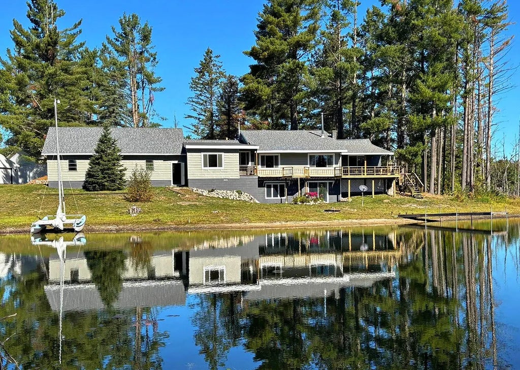 Escape to your private retreat on nearly 7 acres with over 1,250 ft of pristine lake frontage, complete with your very own island. This 3-bedroom, 3-bath home features a brand-new roof, walkout basement, and a custom-tiled master suite offering stunning 180-degree lake views. Designed for comfort and convenience, it includes an attached 3-car garage, a 24x24 supplemental garage, and a massive pole building—perfect for storage, hobbies, or equipment. With unmatched privacy, expansive views, and direct access to the water, this property is a rare find that blends luxury living with incredible outdoor potential.