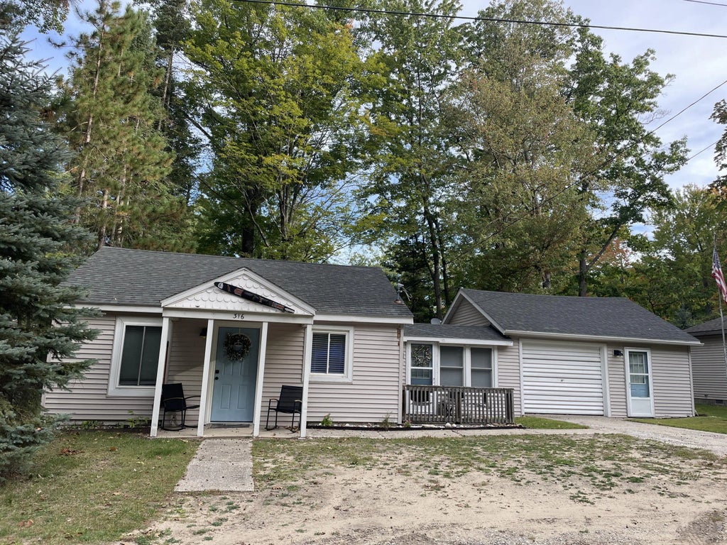Charming 2-bedroom, 1-bath home just a few blocks from beautiful Higgins Lake! This move-in-ready property features a fenced yard with a firepit, horseshoe area, and patio - perfect for relaxing or entertaining. The detached garage includes a workshop for all your projects or storage needs. Inside, the home is being sold fully furnished, including bedroom, living room, and dining room furniture. Updates include a new refrigerator and stacked washer and dryer. Whether you're looking for a year-round home, a personal getaway, or a great rental opportunity near the lake, this property has it all!