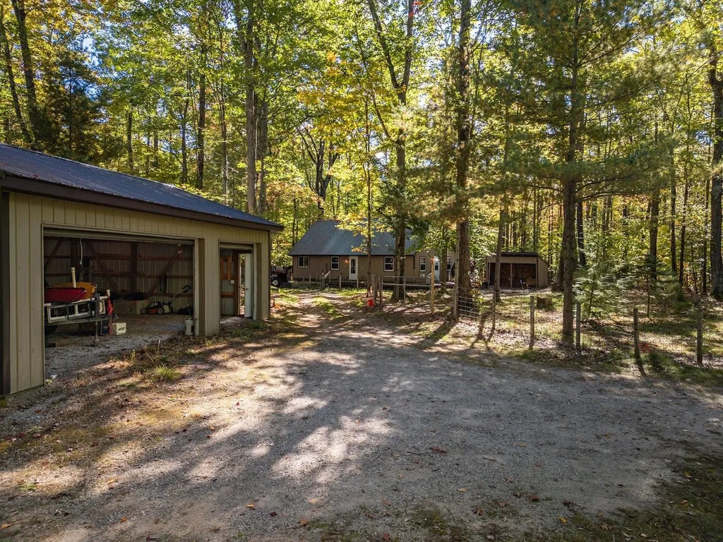Welcome to ''Bocage Del Norte'' - your ideal Up North escape! Lovingly updated and expanded over the past 15 years, this charming 1,200 sq ft home offers a peaceful retreat surrounded by nature. Recent improvements include a modernized bathroom, new furnace, hot water tank, updated flooring, and the addition of a spacious pole barn. An extra 300 sq ft of finished living space has been added, featuring a cozy loft that now serves as a serene yoga room. Nestled on a private 3-acre lot, this home is set back from the road, providing seclusion and a true ''Up North'' atmosphere. Mature oak and maple trees offer cool shade in the summer, enhancing the natural beauty of the property. Located just minutes from the east shore of Mullett Lake, close to Indian River, and only a short drive from I-75 Exit 310, this property offers both convenience and tranquility. Whether you're looking for a year-round residence or a seasonal getaway, Bocage Del Norte is the perfect place to unwind.