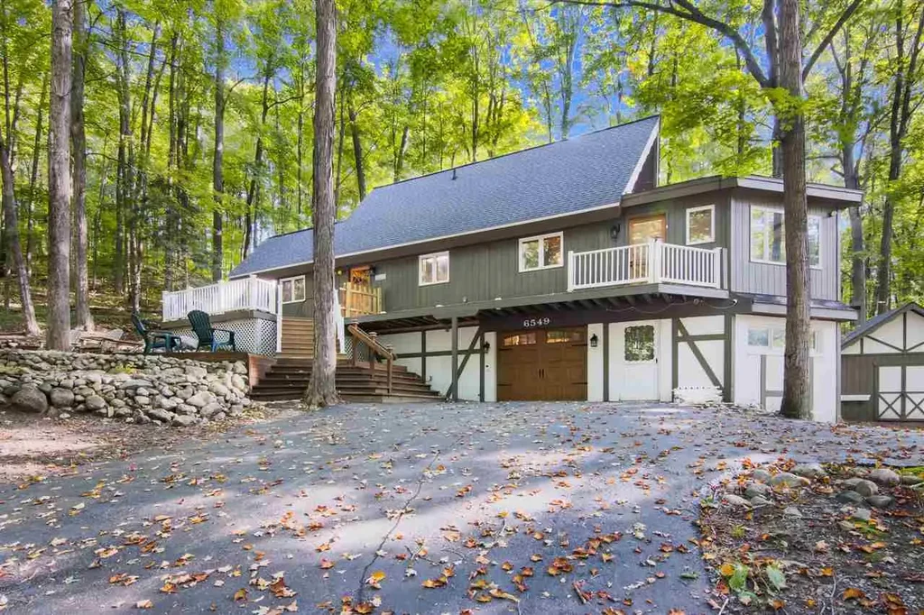Welcome to your Schuss Mountain getaway. An inviting three bedroom 2 1/2 bath chalet, nestled on a wooded double lot, with an acre of land for privacy from nearby homes. This will be your favorite getaway any time of year. The home enjoys an open floor plan with expansive living room and dining area that feature lovely woodland views. The natural stone fireplace is a highlight of the room as are the tongue and groove wood ceilings. You’ll appreciate the touches of a European chalet, with conveniences and updates you want in a home today. In the morning grab a cup of coffee at the coffee bar and relax by the wall of windows to enjoy the sun peeking through the canopy of trees. If you need to catch up with the office, there is space by the entry for a workspace away from the main rooms. There is plenty of space for you and guests with a main floor bedroom and adjacent bath, as well as two large bedrooms on the second floor with a shared bath. The lower level offers a cozy family room, perfect for watching movies, with a half bath. A single car garage will keep your vehicle out of the weather and you’ll appreciate the large laundry room that includes plentiful storage cabinets, countertop workspace and a utility sink. Hang out by the firepit under the canopy of trees, or enjoy a meal on the deck. The home has been nicely updated in the last year with cushy carpeting upstairs - comfortable under your feet and a substantially quieter environment was created in the home. The interior spaces have been brightened up with new paint upstairs and in the lower level, and the kitchen cabinets were refinished giving a new life to the space. For modern conveniences, the home is wifi enabled so you can control access and heating remotely, and luxury vinyl plank flooring graces the main and lower levels. A mini-split ensures a comfortable living space too. This won’t last long with its potential as a great investment property or northern getaway.