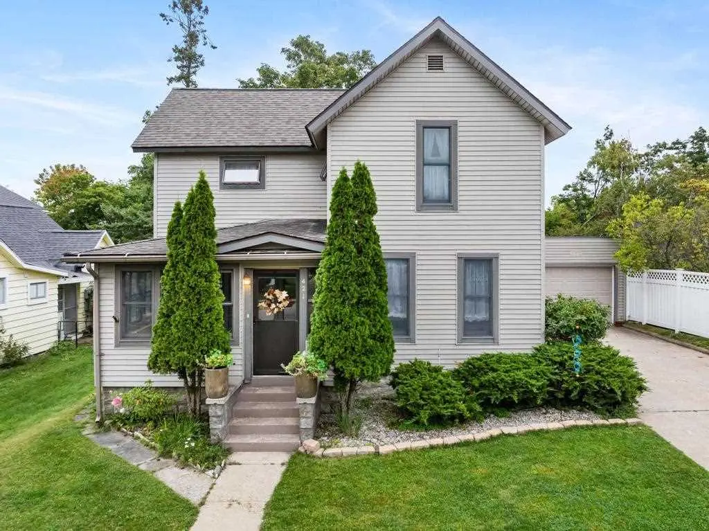Beautiful Downtown Petoskey Classic walking distance to the Gaslight District and featuring a deep, private back yard that sits on a high bluff overlooking the Bear River Valley. There are also Lake Michigan views from this updated and well-maintained stunner that has a rich history of lucky owners who have enjoyed exactly what you want: to be close to town but in a private setting with no neighbors in sight behind you. The main floor features an updated kitchen with stone countertops and ample cupboard space, an eat-in kitchen table for when you don't want to use the formal dining area, and a recently updated bathroom complete with a gigantic tile shower, custom closets, and a main floor laundry. The first floor flows beautifully and is the perfect gateway to the unbelievable rear deck (Trex decking) and lush backyard overlooking the river valley and miles of walking/biking trails that the City of Petoskey has invested heavily in. Upstairs is quaint yet spacious, with a large primary bedroom with an interesting nook, perfect for home office use or as a cozy place to curl up with a book, plus two additional good-sized bedrooms, the second bath, and a couple of different views of the clear blue water of Lake Michigan that Petoskey is famous for. So, whether you are a family looking to be close to schools and the downtown area, a retiree wanting your own space close to the hospital and amenities, or a Weekend Warrior looking for a convenient home base to take advantage of 4 seasons of Northern Michigan fun, 421 Wachtel Ave fills all of those needs and is ready for its next owner to start living the good life along the shores of Little Traverse Bay. If you are going to invest in something, make sure it's in a premium location, and since they're not expanding the city limits, an in-town Petoskey House with a water view should set you up for success.
