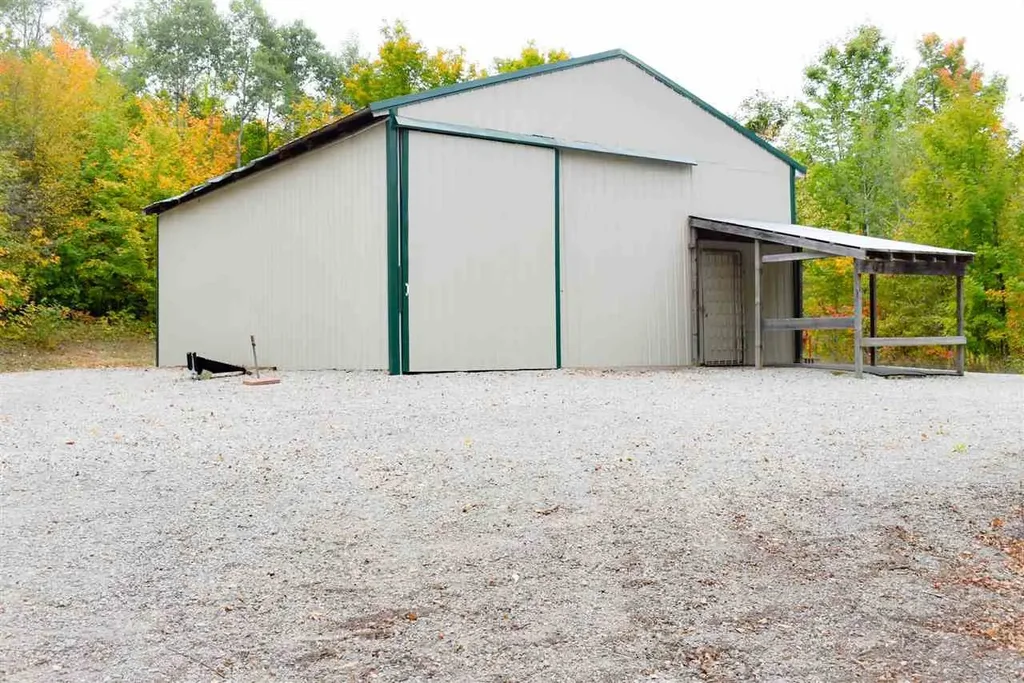 Located on 10 wooded acres is a 30' x 42' storage pole barn with a standard door and a 12' sliding door. There is a well on the property, however, no electricity has been brought to the property-it has been set up to be run by a portable propane generator. Property is accessed by an easement that is not maintained or plowed by a third party.