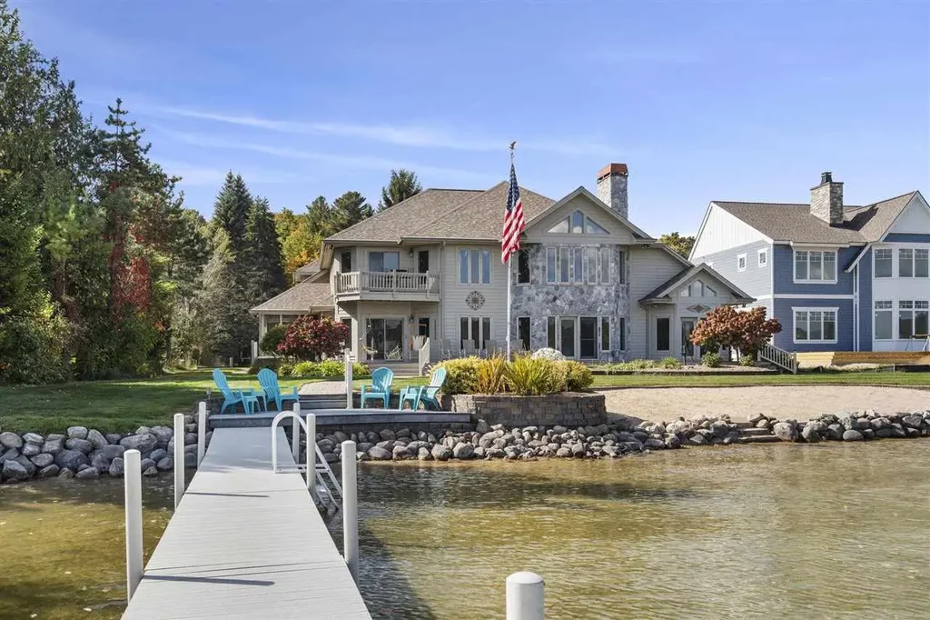 Welcome to lakefront living at its finest on beautiful Intermediate Lake, one of Northern Michigan’s most sought-after all-sports lakes. This 4,000 sq. ft. custom-built home sits on just under an acre with 110 feet of frontage, offering warm waters, excellent fishing, and light boat traffic for peaceful enjoyment. Impeccably maintained and in near-perfect condition, the home features 4 bedrooms and 5 bathrooms, providing plenty of space for family and guests. The soaring 25+ ft ceilings in the great room frame breathtaking views of the lake, complemented by a tongue-and-groove ceiling and a striking stone fireplace. The owner’s suite is a private retreat, complete with a luxurious bathroom featuring a jetted soaking tub and shower, walk-in closet with built-in cabinets, exercise or flex room, fireplace, and walkout access to the lakeside deck. Upstairs you'll find 3 additional bedrooms, a loft, 2 bathrooms and a walk-in cedar closet. Outdoor living is just as impressive, with a composite deck, screened porch, hot tub, irrigated lawn, rock retaining wall, and a sandy beach area at the water’s edge. A 30’x40’ pole barn is ready to store your boat and lake toys, while the detached bunkhouse offers a perfect getaway space for kids or guests. Additional highlights include a paved driveway with gated entry, your own chipping and putting green, and a dock included in the sale, so you can start enjoying the lake immediately. Recent updates provide peace of mind, including a new roof (2021), new AC units (2019 & 2025), furnaces (2018 & 2019), water heater (2019), and water softener (2016) among others. Ideally located just minutes from downtown Bellaire, Central Lake, and Shanty Creek golf and ski Resort, this move-in-ready property invites you to drop your bags and start living the lake life.